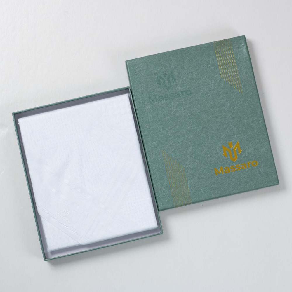 • شماغ مسارو Massaro أبيض سيجنتشر رجالي بخامة قطن فاخرة مع علبة أنيقة